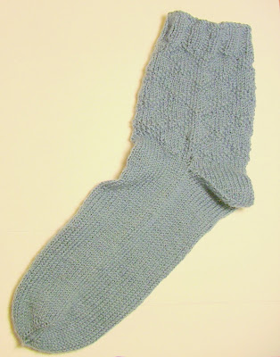 The next sock is Ginger's birthday sock. I made them for her out of Socka on size 1's and a King Charles Brocade pattern on the calf. They match 99% of her work shirts.